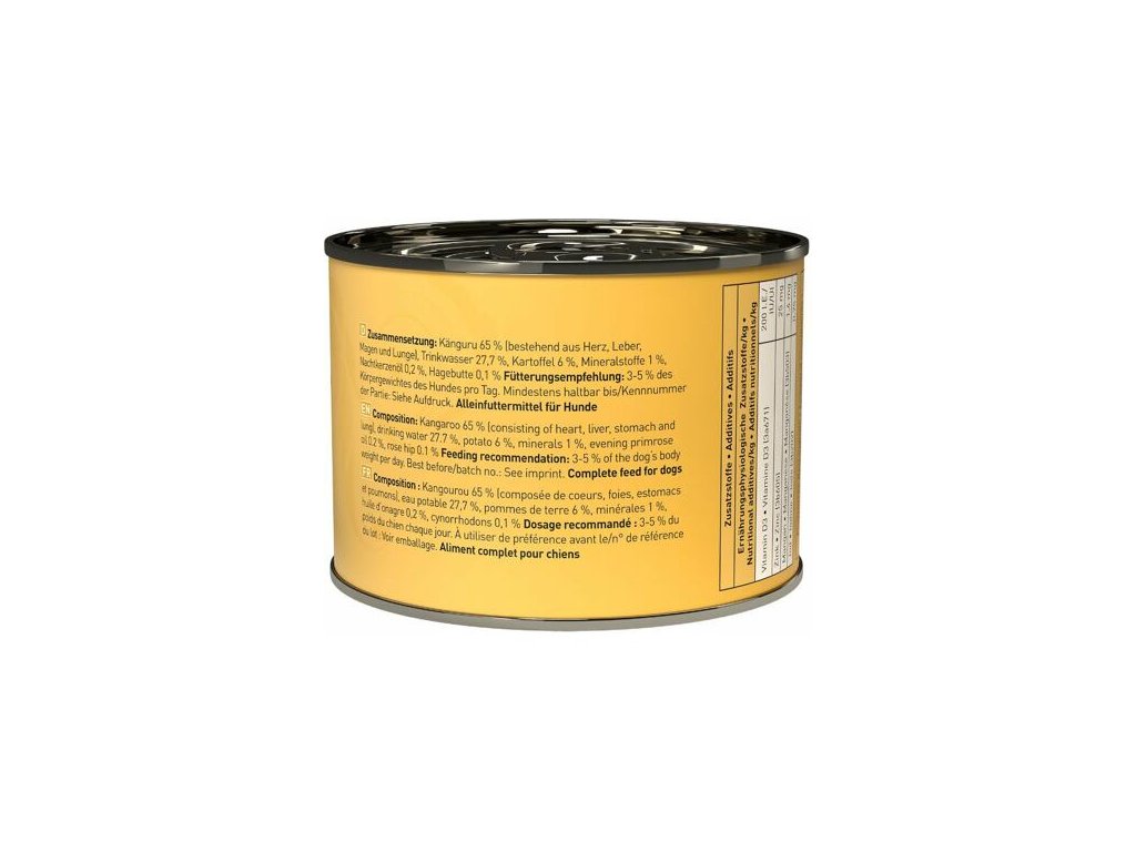 Lahodné krmivo pro psy, které obsahuje spoustu klokaního masa, brambory, zdraví prospěšný pupalkový olej a šípky. Dogz finefood obsahuje pouze suroviny vysoké potravinářské kvality a svým složením odpovídá přirozené psí stravě. Krmivo je bez konzervantů, umělých barviv a dochucovadel. Krmivo neobsahuje geneticky upravené suroviny. Jedná se o kompletní krmivo.Složení: klokaní vnitřnosti 65% (srdce, játra, žaludky a plíce), voda 27,7%, brambory 6%, minerály 1%, pupalkový olej 0,2% a šípky 0,1%.