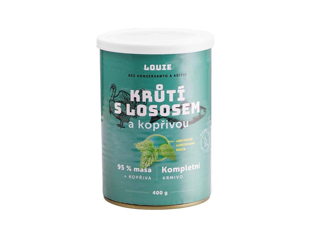 Louie konz.pro psy krůtí s lososem a kopřivou 400g