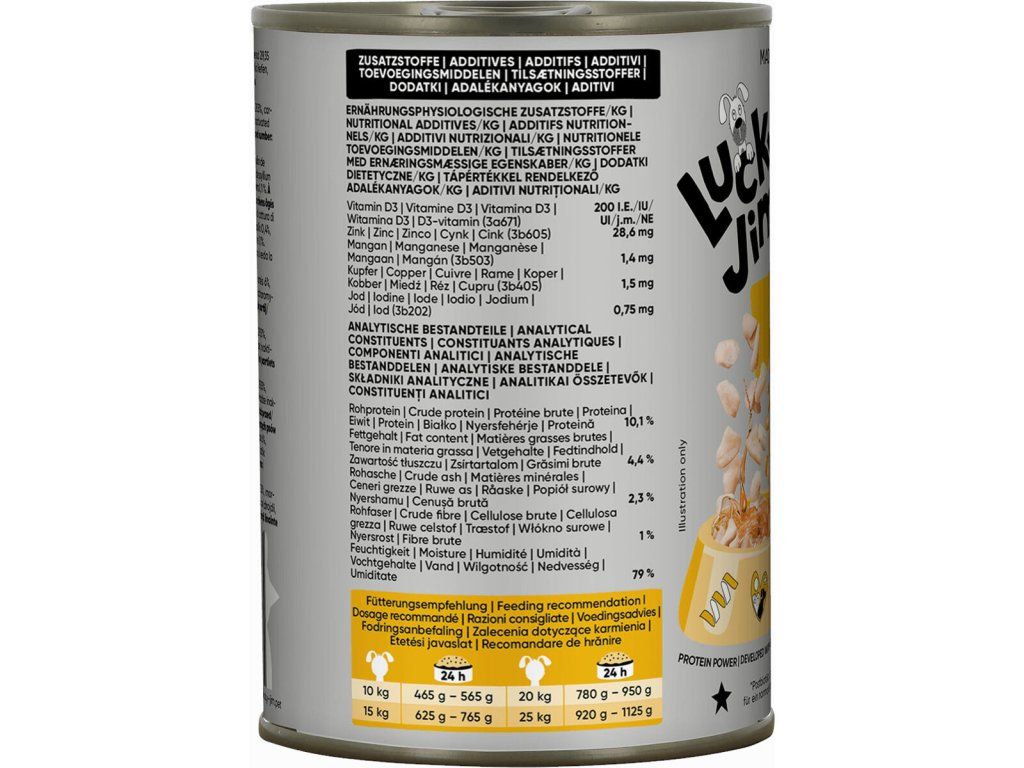 Uvedené množství je orientační a může se lišit podle aktivity, metabolismu a kondice psa. Vždy zajistěte dostatek pitné vody.