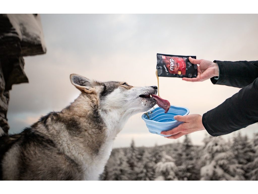 Hledáte vhodné alternativy ke konzervám, kterými můžete ochutit granule? Naše omáčky přinášejí další variantu, jak zatraktivnit krmnou dávku. Stejně jako vývary se navíc hodí i k hydrataci organismu nejen při sportovním výkonu. Balení je lehké a skladné, ideální na výlety či cestování. Omáčky jsou zcela přírodní, bez umělých konzervantů a barviv s vysokým obsahem kolagenu.