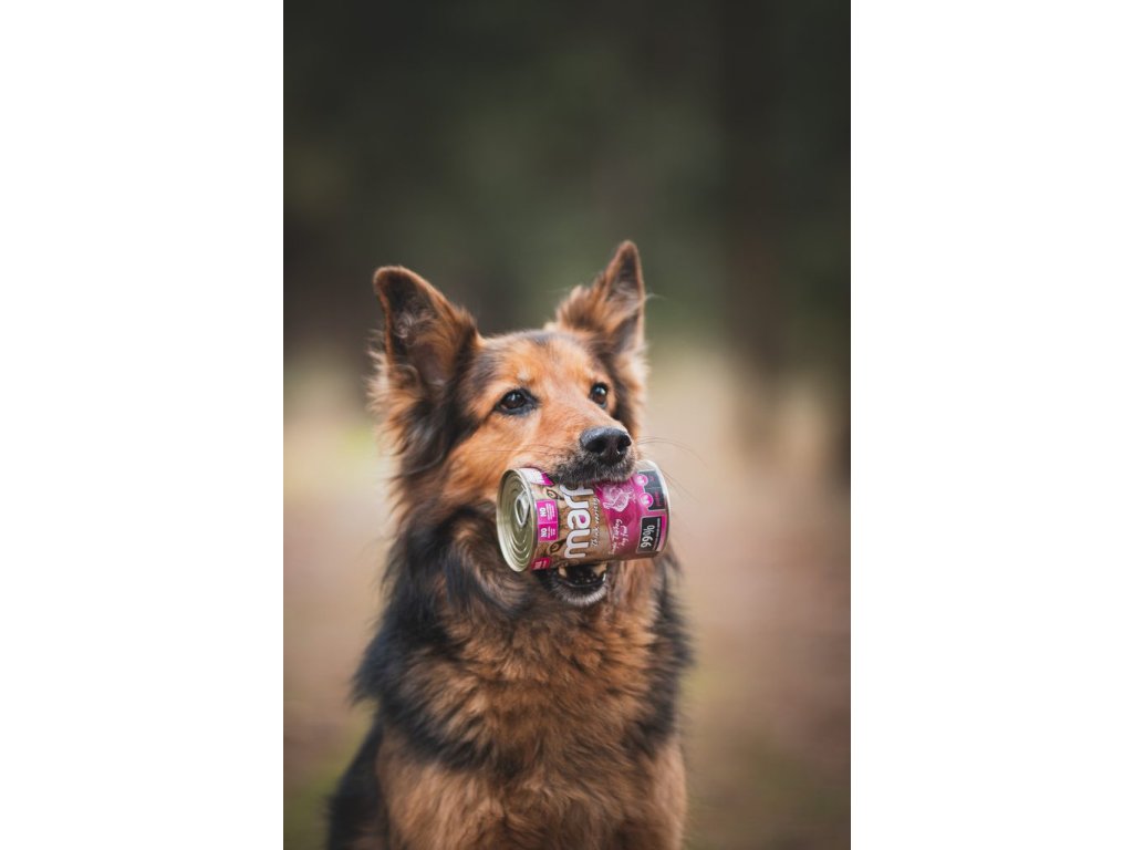 Konzerva s jedním druhem masa, vhodná pro štěňata a dospělé psy všech plemen