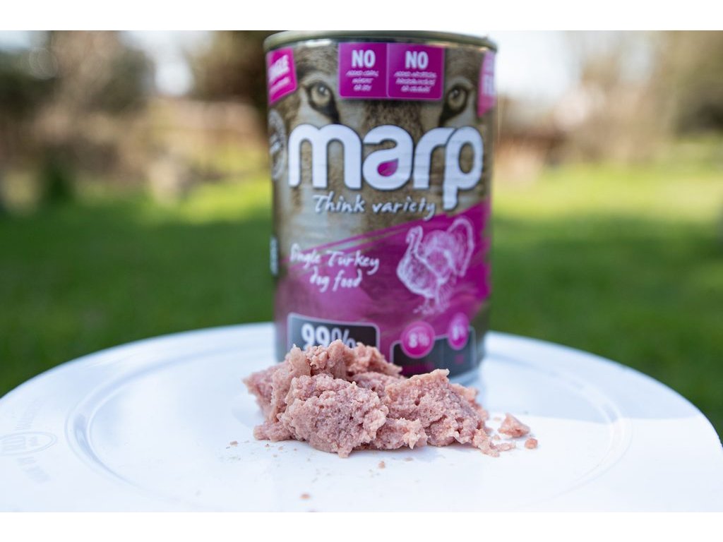 Konzervy Marp Variety Single obsahují 99% bílkovin ze živočišných zdrojů - tato konzerva obsahuje pouze krůtu. Díky tomuto unikátnímu druhu masa jsou vhodné i pro citlivé psy a psy s potravními alergiemi. Konzervy můžete použít samotné, ale velmi dobře se hodí pro přimíchávání do granulí. Nepoužíváme žádné umělé konzervanty, barviva, plnidla apod.