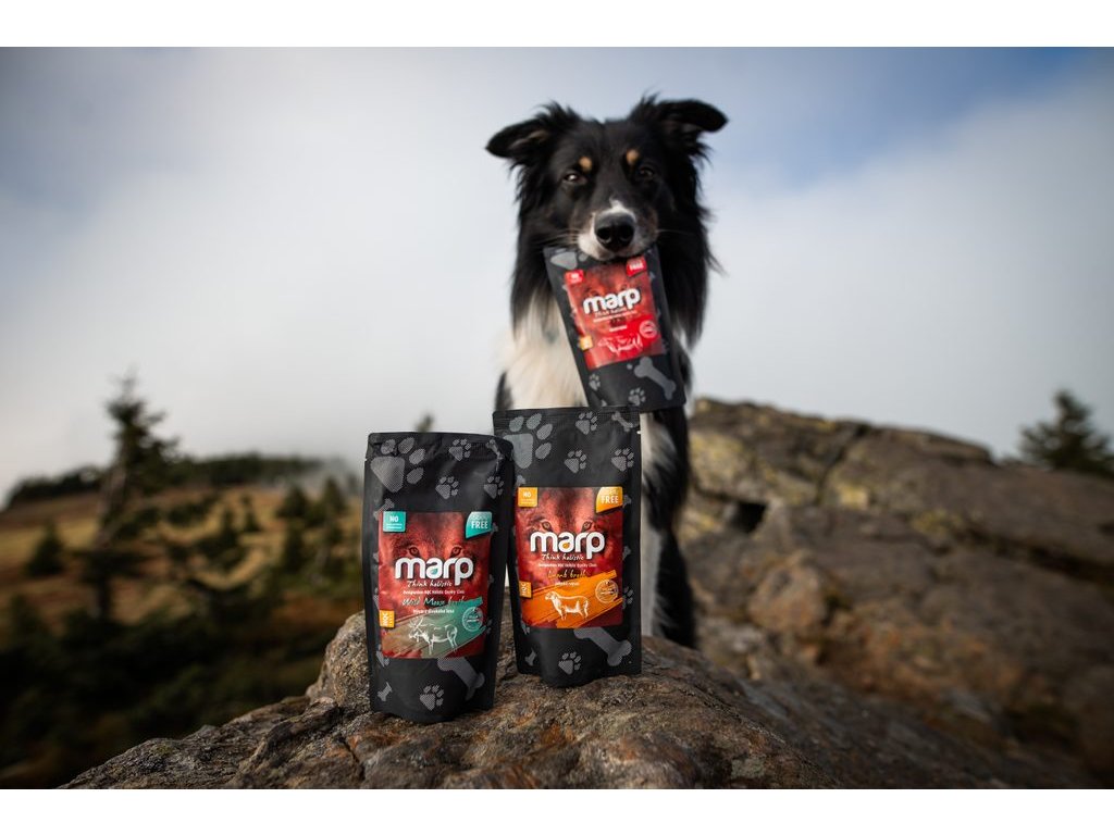 Marp think variety je nejnovější řada, ve které jsme se vrátili k tradičním recepturám v duchu maso a rýže, ale posunuli jsme je dál dle možností dnešních technologií. Tato řada je kompletně bez lepku, protože víme, že na lepek mohou být alergičtí i psi. Stejně tak v této řadě nenajdete nic z kuřete - všechny receptury jsou bez kuřecího masa, tuku nebo vnitřností. Kombinace čerstvého a sušeného masa zajišťuje jak dostatek živočišných bílkovin, tak také vysokou chutnost. Jednoduché receptury bez jakýchkoliv umělých konzervantů nebo barviv zajišťují, že krmivo bude pro vašeho psa skutečně funkční a bude po něm výborně prospívat.