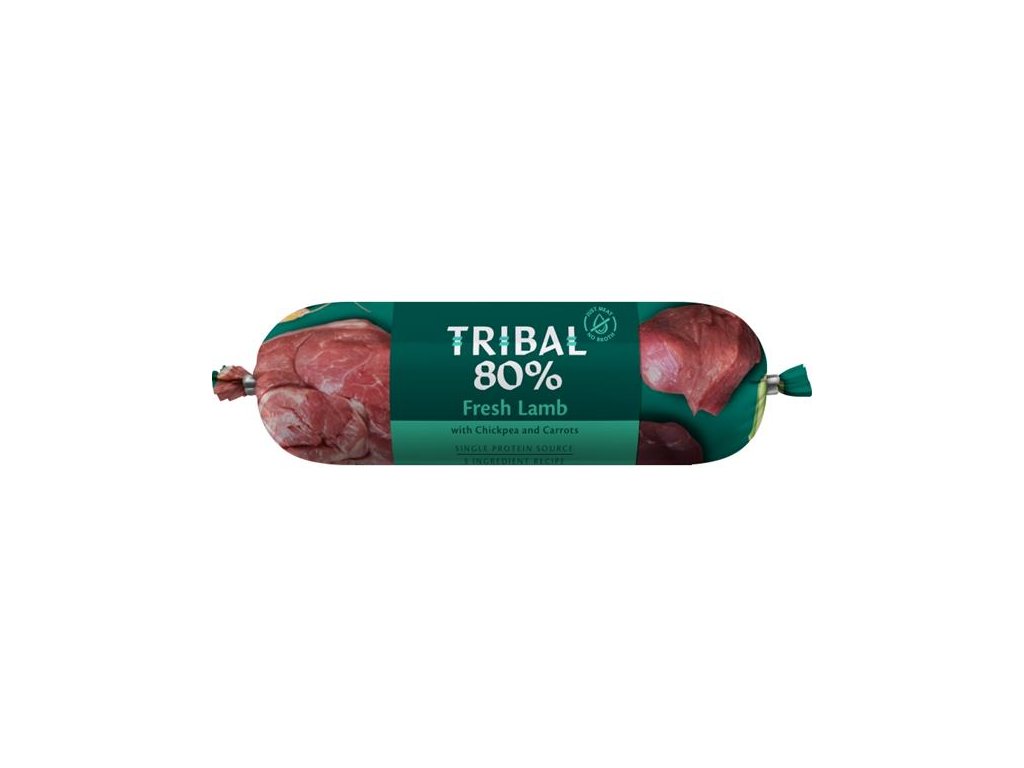 Toto kompletní mokré bezobilné monoproteinové krmivo pro psy obsahuje 80 % živočišných bílkovin. Receptura sestává z pouhých 3 ingrediencí: 80 % masa z jednoho zdroje + cizrna + mrkev. Díky jednoduchému složení jsou salámy Tribal 80 % vhodné i pro nejcitlivější a nejvybíravější psy a jsou ideálním doplňkem ke krmivům Tribal Fresh Pressed.