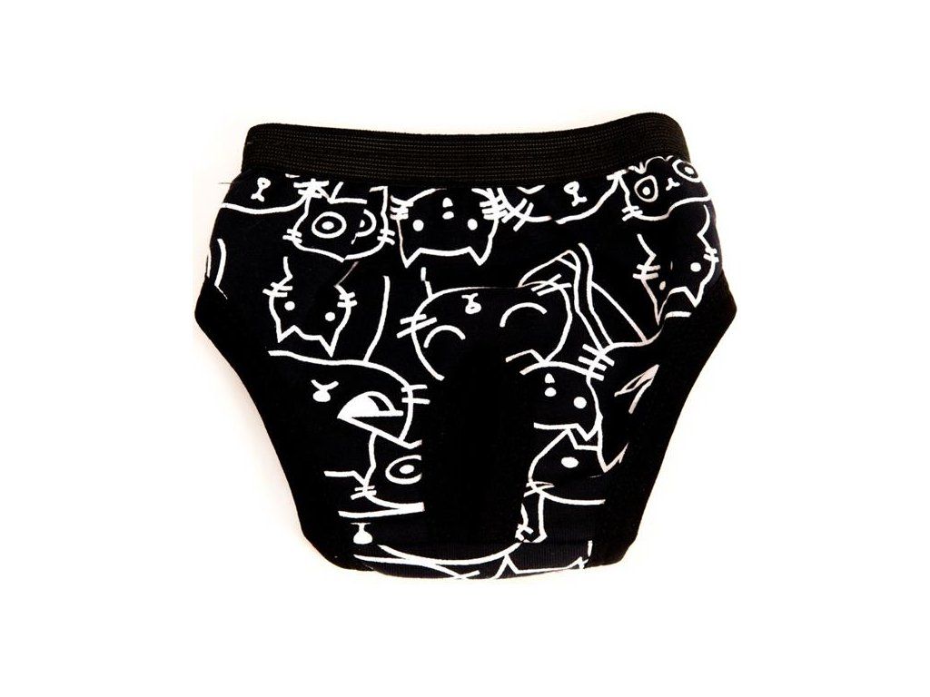 Díky pružným okrajům a v pase našité měkké gumě se snadno a rychle oblékají i svlékají, perfektně sedí a nijak fenku neomezují v pohybu. Samozřejmostí je otvor pro ocásek a uvnitř síťka k zachycení vložky.