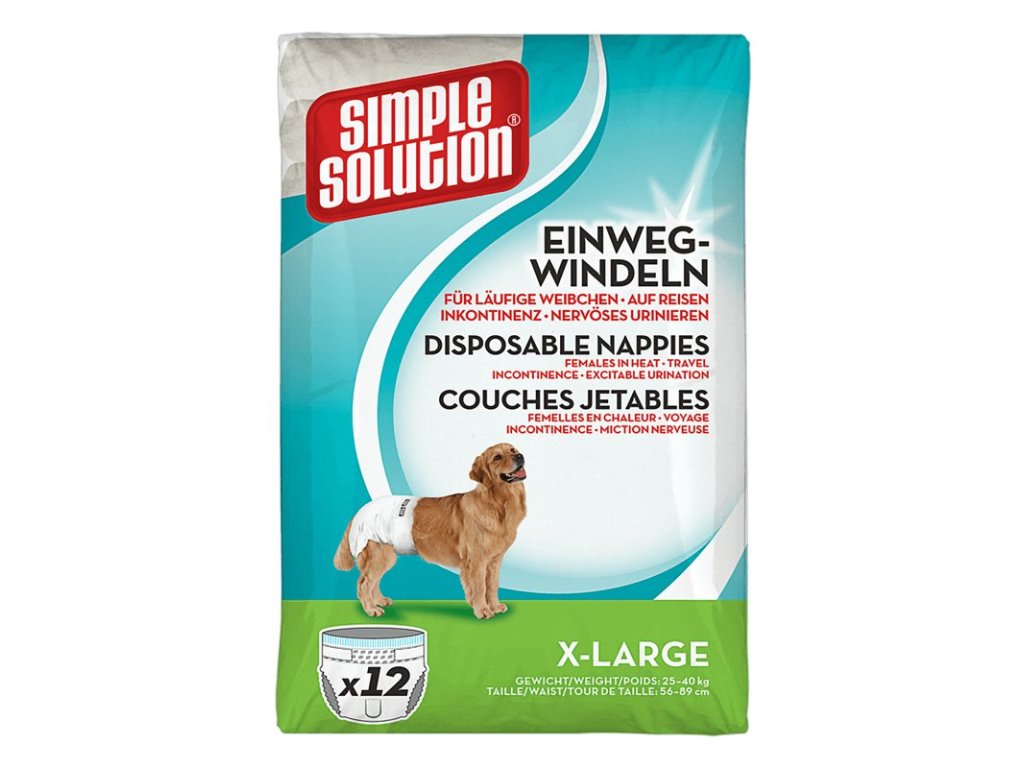 Jednorázové pleny od Simple Solution jsou vyrobeny z buničiny a obsahují super absorpční polymer, který přispívá k rychlému vstřebání tekutin a udržuje pokožku v suchu. Každá plena má díru na ocas a regulovatelný obvod pasu pro jednoduché a pohodlné nošení. Štíhlý design vyhovuje pohybu psa, zatímco dvojitá bariéra zabraňuje únikům a poskytuje pohodlí.