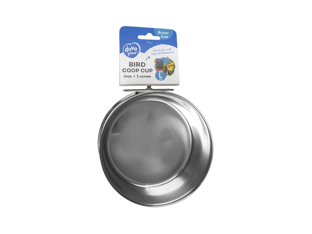 Nerezová miska se závěsem na šroub je vhodná do klecí, voliér či transportních klecí.