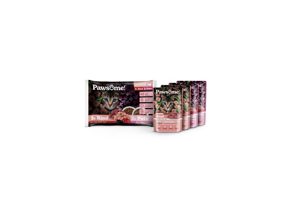 Pawsome! Junior s hovězím/ s krůtím masem Multipack 4x85 g