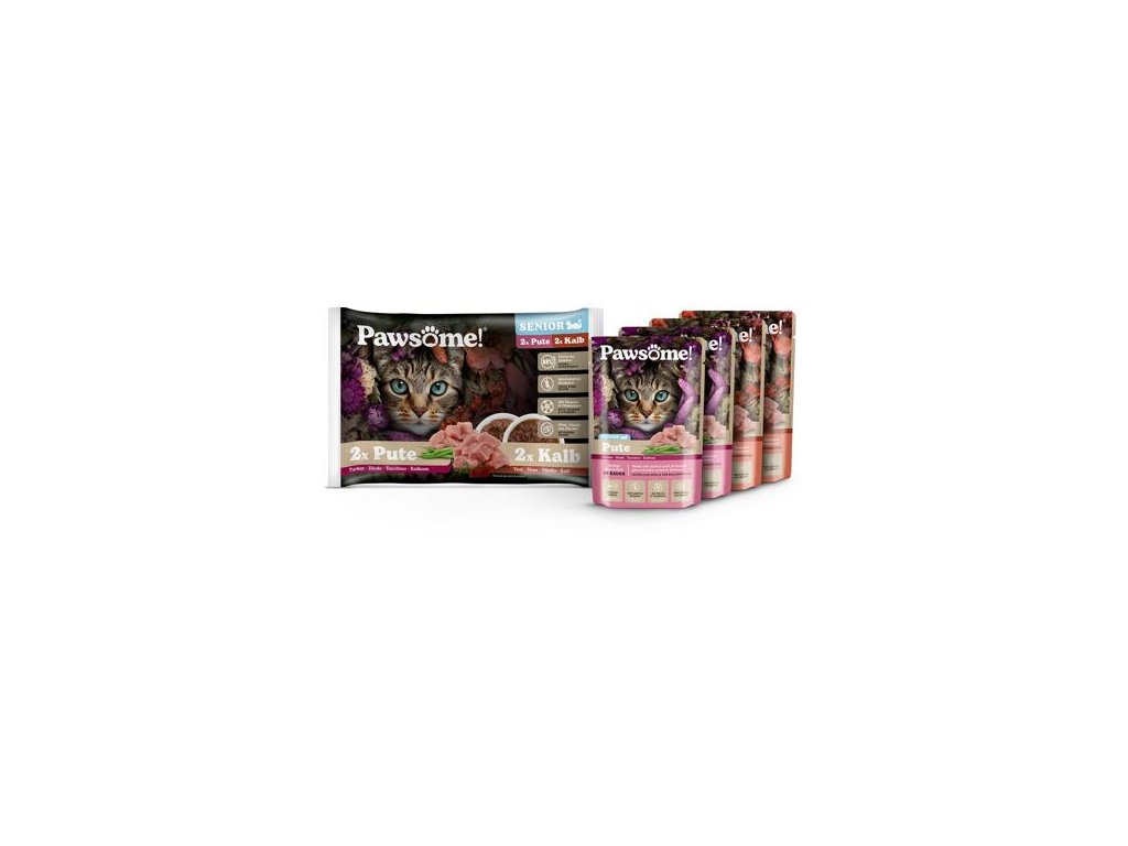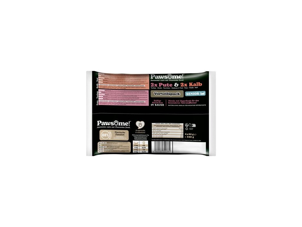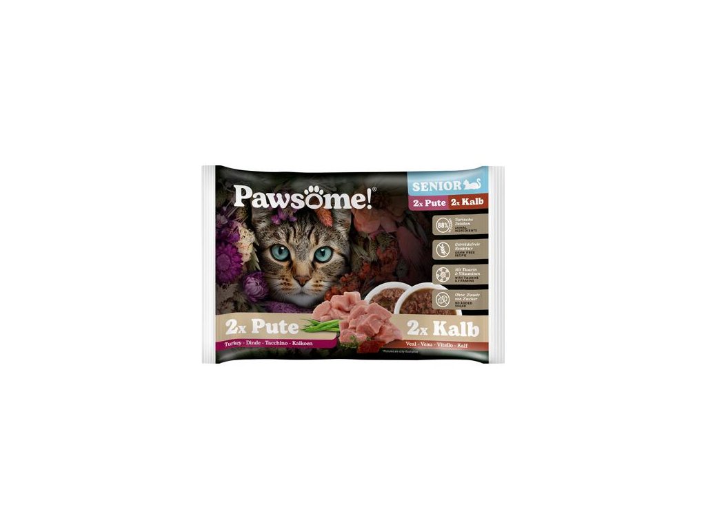 Pawsome! Senior s telecím/ s krůtím masem Multipack 4x85 g