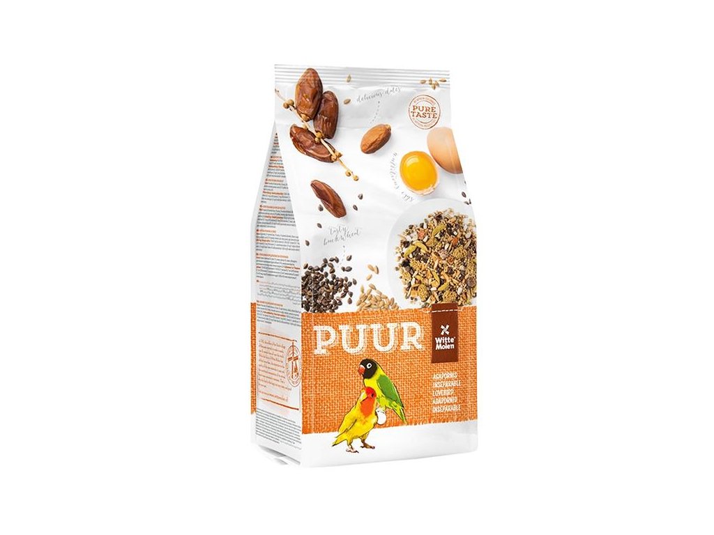 Receptura PUUR Lovebird - agapornis obsahuje vše, co agapornisové potřebují pro plnohodnotný život. Vyvážené složení s přidanými vitamíny a stopovými prvky pro zvýšení vitality ptáků. Přidané bílkoviny (vejce) napomáhají skvělé kondici opeření a odchovu mláďat. Lněné semínko pro lesklé peří a snadné přepeřování. Přidaná prebiotika se podílejí na zdravém trávení. Navíc drcené lastury ústřic podporují zdravé trávení a jsou výborným zdrojem vápníku. Krmivo bez umělých barviv a umělých aromat – chutí a vůní.