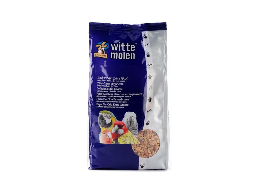 WitteMolen Softfood Extra coarse obsahuje složky potřebné pro správný růst mladých ptáků, pro zvýšené nároky dospělých ptáků v období rozmnožování a také v období přepeřování. Krmivo je připraveno k přímému použití.