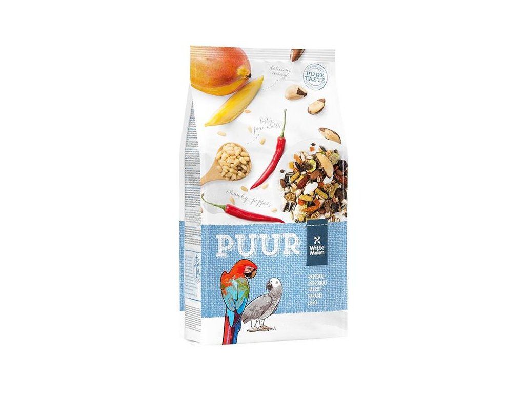 Receptura PUUR Parrot – velký papoušek obsahuje vše, co velcí papoušci potřebují pro plnohodnotný život. Vyvážené složení s přidanými vitamíny a stopovými prvky pro zvýšení vitality ptáků. Přidané bílkoviny (vejce) napomáhají skvělé kondici opeření a odchovu mláďat. Lněné semínko pro lesklé peří a snadné přepeřování. Přidaná prebiotika se podílejí na zdravém trávení. Navíc drcené lastury ústřic podporují zdravé trávení a jsou výborným zdrojem vápníku. Krmivo bez umělých barviv a umělých aromat – chutí a vůní.