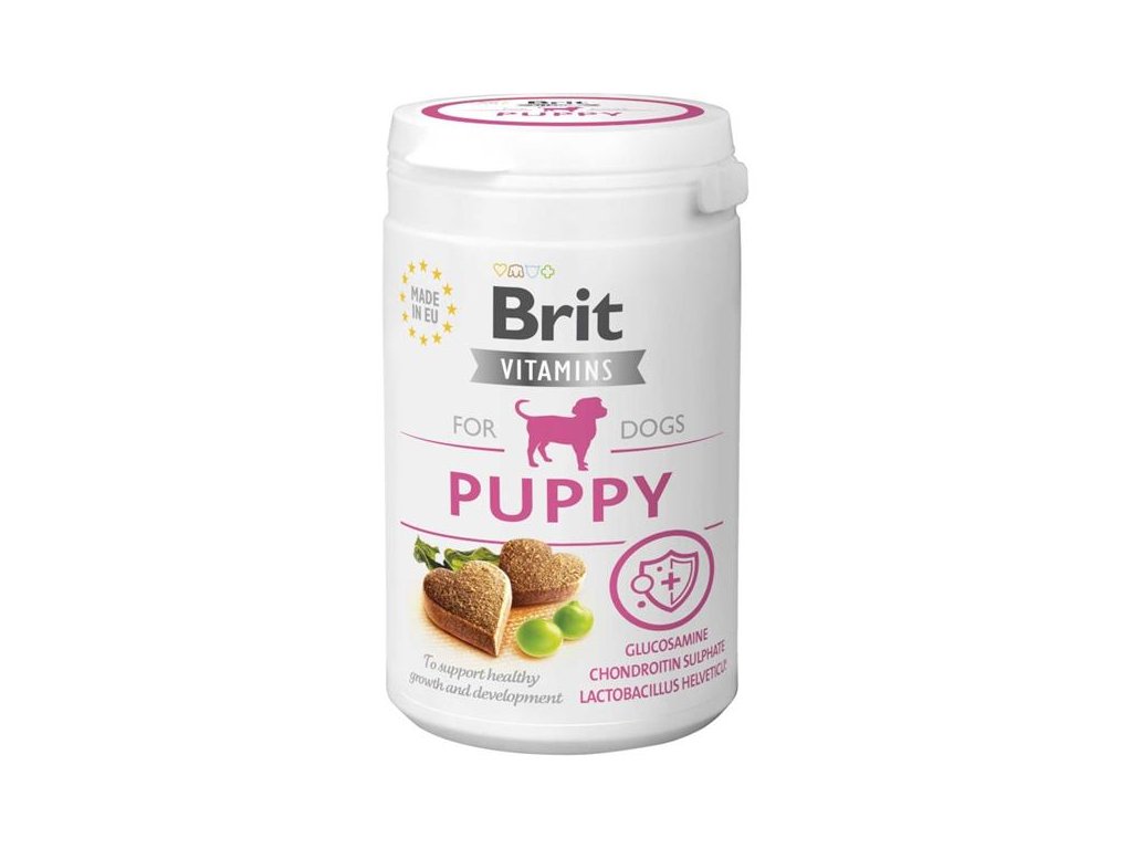 Funkční poloměkké doplňkové krmivo Brit Vitamin je doporučeno pro štěňata ve věku 8+ týdnů. Hlavním cílem tohoto přípravku je podpořit zdravý vývoj v dospělého psa. Nutriční doplňky stravy pro psy přispívají ke zdraví a spokojenému životu domácího mazlíčka. Brit Puppy obsahuje glukosamin a chondroitin. Tyto látky podporují zdravý růst a vývoj kloubů (potažmo i kostí a chrupavek). Dále jsou do složení přidána probiotika, která podporují zdraví trávicího traktu.