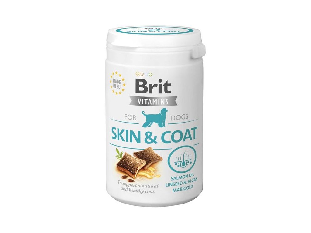 Funkční poloměkké doplňkové krmivo Brit Skin & Coat je doporučeno pro dospělé psy, a to především v době línání a pro psy s náročnou péčí o srst. Hlavním cílem těchto přípravků je podpořit kvalitu srsti a pokožky u psa. Nutriční doplňky stravy pro psy přispívají ke zdraví a spokojenému životu domácího mazlíčka. Složení je speciálně upraveno tak, aby obsahovalo vyvážené množství omega-3 mastných kyselin, vitamínů skupiny B a organického zinku. Užívání tohoto komplexu vitamínů a minerálů má pozitivní účinky na lesk a kvalitu srsti. Losos (ve formě oleje) je kvalitní bílkovina pro zvýšení svalové syntézy a zdraví kostí.