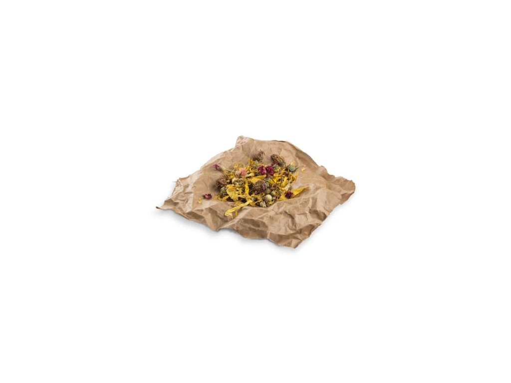 Složení: květy růže, jetel luční (20 %), květy chrpy luční červené, květy měsíčku lékařského, sedmikrásky (10 %), květy slunečnice, květy chrpy růžové