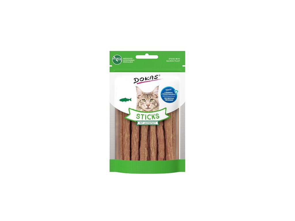 Dokas Sticks jsou měkké pamlsky s filetem z lososa a kuřecí chrupavkou – přírodním zdrojem kolagenu, který podporuje zdraví kloubů a vazů.Zejména u aktivních koček, starších koček nebo koček s problémy s pohybovým aparátem může kolagen pomoci zlepšit celkovou kondici a zpomalit opotřebení kloubů. Tyto pamlsky jsou proto nejen chutnou, ale i funkční odměnou, která podporuje zdraví a vitalitu vašeho mazlíčka.