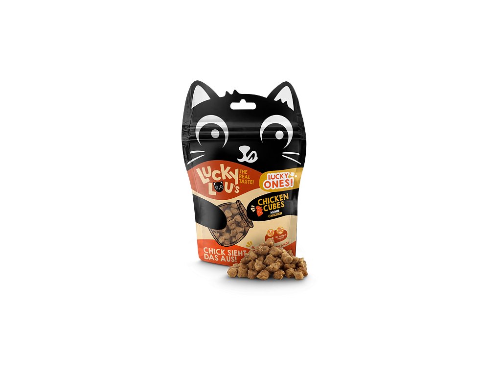 Kdo říká, že s jídlem se nehraje? Lucky Cubes vás přesvědčí o opaku!Lucky Ones Cubes jsou šťavnaté kostičky kuřecího masa, které se perfektně hodí pro časté odměňování a hru s vaší kočkou.