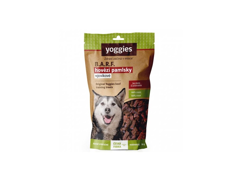 B.A.R.F. pamlsky Yoggies jsou skvělou pomůckou při výcviku psa. Přírodní masová vůně zvyšuje fixaci psa a motivovanost k provádění povelů. Malé kousky pes sice většinou nekouše, ale vychutná si pocit z odměny po úspěšně vykonaném cviku.
