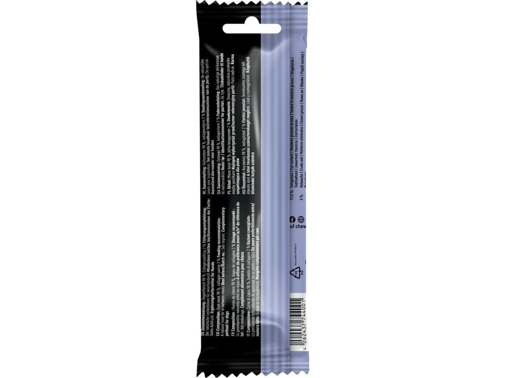Přírodní kolagenové střívko není jen obalem, ale dodává pamlsku další nutriční hodnotu – kolagen podporuje zdravé klouby, kůži i srst.