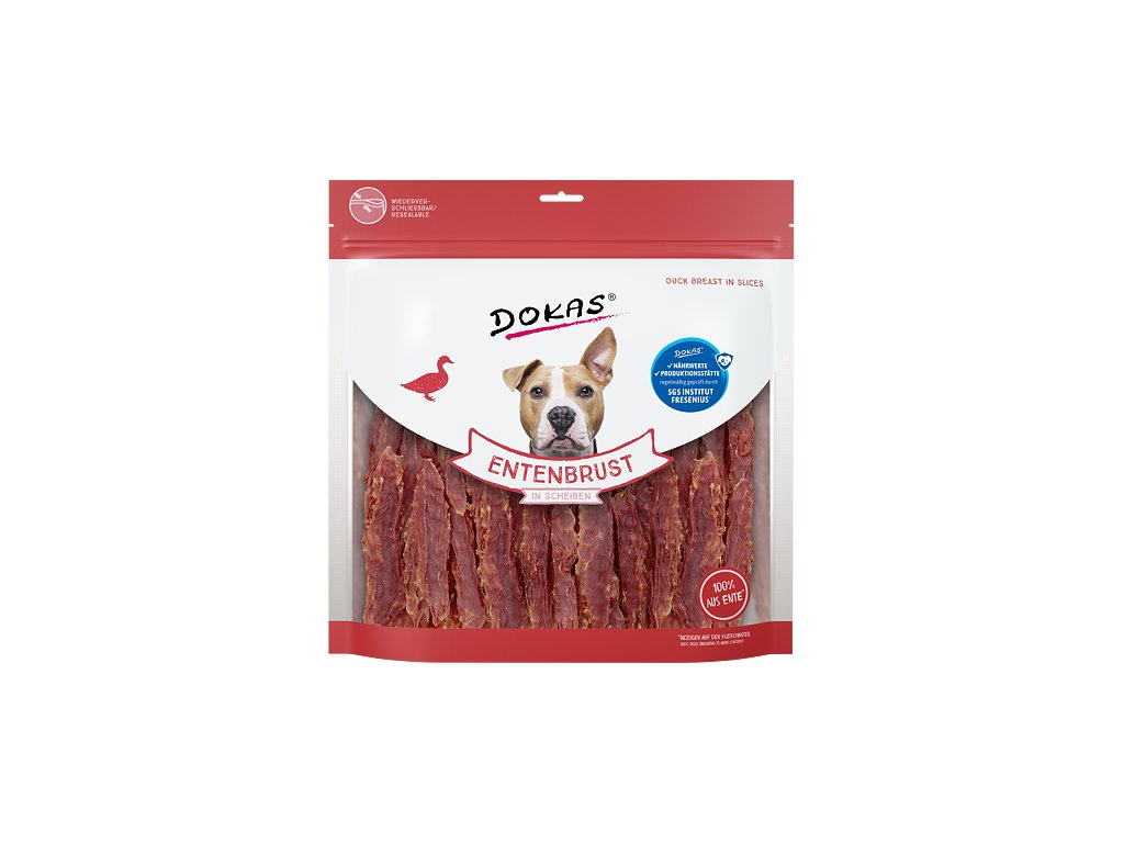 Lahodné široké kachní masové proužky jsou tradičně oblíbenou pochoutkou. Vysoká kvalita použitých surovin zaručuje výraznou chuť a vůni. Jsou velmi oblíbené pro své přírodní složení.Pamlsky Dokas jsou bez konzervantů, umělých barviv, dochucovadel a glycerinu. Sáček má praktické uzavírání, pamlsky tak zůstanou déle čerstvé a voňavé.
