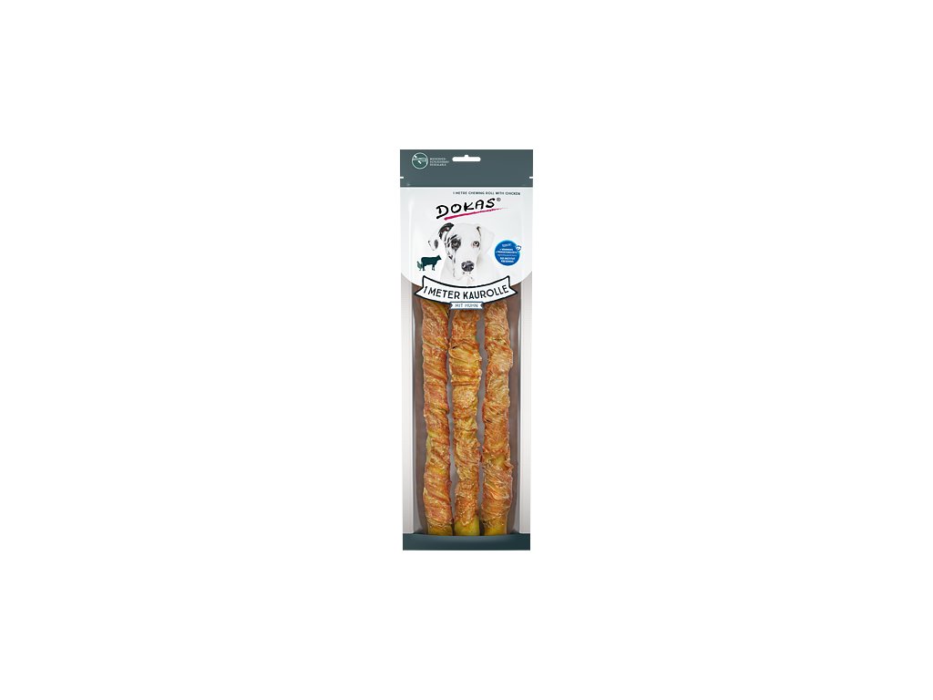 Silné tyčky z hovězí kůže a kuřecího masa o délce 33 cm zabaví na delší čas všechny milovníky žvýkání. V balení jsou 3 kusy, tedy celkem 1 metr pořádné zábavy. Žvýkání pomáhá udržovat zdravé zuby a dásně. Vysoká kvalita použitých surovin zaručuje výraznou chuť a vůni. Jsou velmi oblíbené pro své přírodní složení.Pamlsky Dokas jsou bez konzervantů, umělých barviv, dochucovadel a glycerinu. Sáček má praktické uzavírání, pamlsky tak zůstanou déle čerstvé a voňavé.