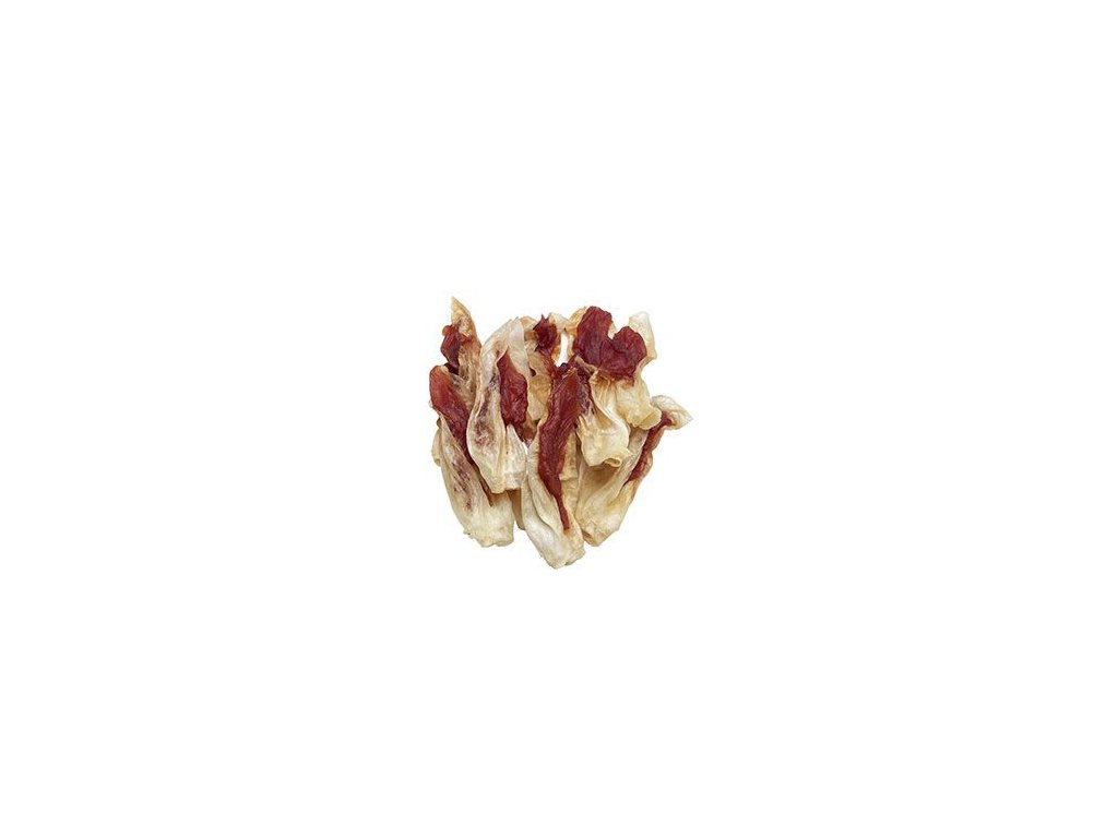 Masová pochoutka pro psy, králičí ucho plněné kachním masem.