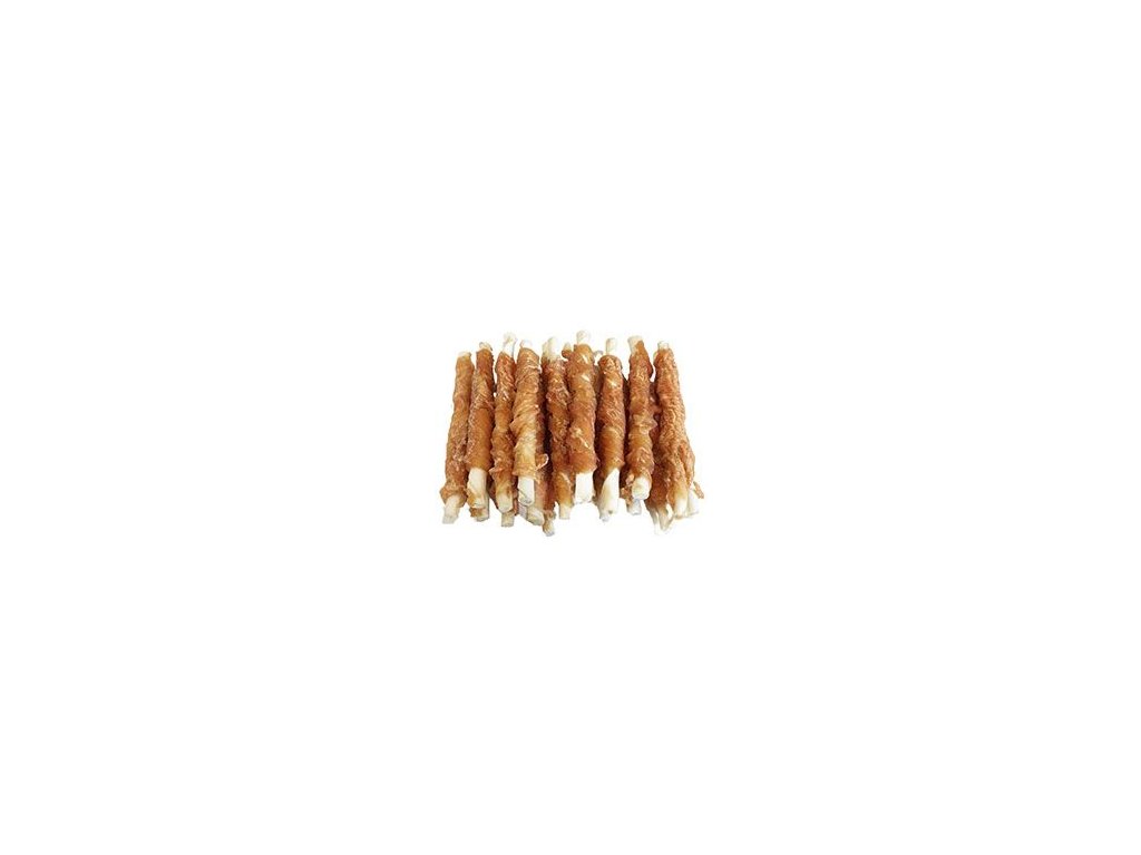 Masová pochoutka pro psy, tyčinka z buvolí kůže s kuřecím masem.