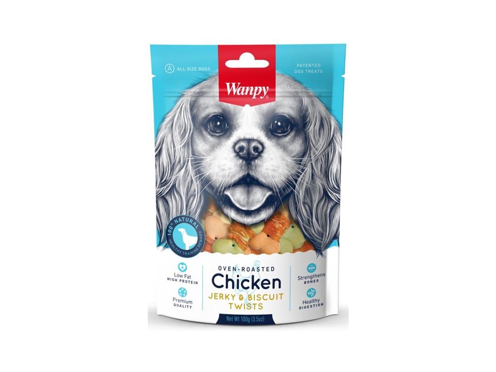 Wanpy Dog Chicken Jerky & Biscuit Twists 100 g