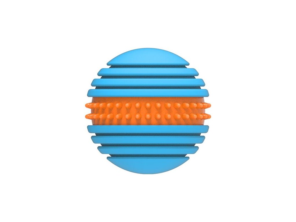 Míček je vyroben z termoplastické gumy, která je odolná pro drsnou hru plnou ostrých zoubků a zároveň dostatečně měkká a pružná, aby hra s ním byla bezpečná a šetrná k tlamě psa.Výstupky a vroubky po jeho obvodu masírují dásně během hry a pomáhají tak pečovat o jeho ústní hygienu.