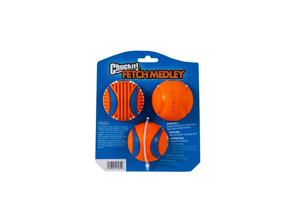 Chuckit! Fetch Medley Gen 3 – to 3 jsou prémiové míčky Chuckit! V balení najdete klasický Fetch Ball, Ultra Ball a nový Rugged Ball.Ultra Ball je u Chuckit! jasná jednička! Míček je navržený tak, aby byl dokonale pružný a zároveň odolný při hře na zemi i ve vodě.