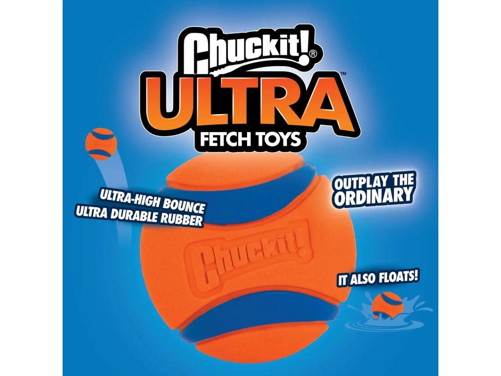 Patří mezi nejlepší aportovací míčky. Míčky Chuckit! Ultra Ball mají velký odskok, jsou dokonale pružné, výborně viditelné, velmi odolné a jednoduše omyvatelné.Míčky jsou vyrobené z přírodní gumy. Milovníci vody ocení to, že bez problémů plavou. Perfektně padnou do házečů Chuckit!.