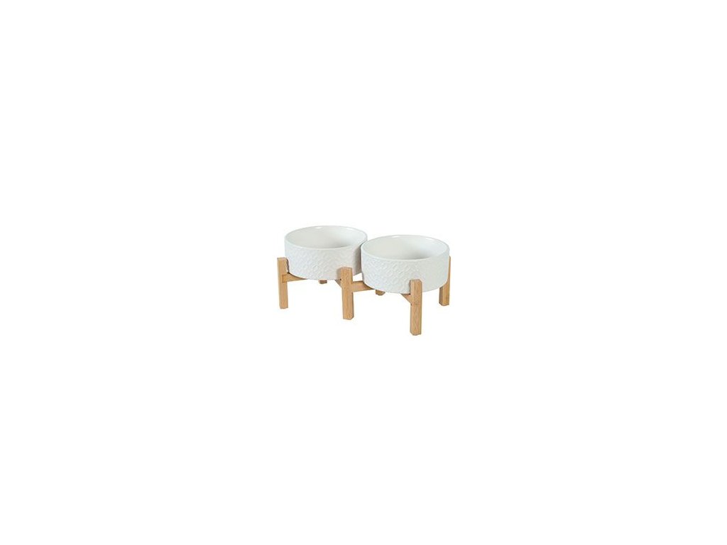 2 keramické misky pro psy i kočky v elegantním designu. Misky jsou na společné bambusové podnoži, která je opatřena protiskluzovými podložkami.