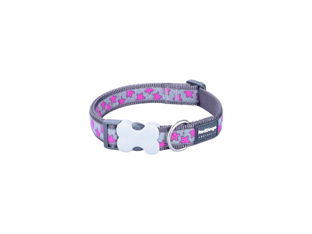 Red Dingo obojek – Hot Pink Stars on Grey – 20 mm x 30-47 cm