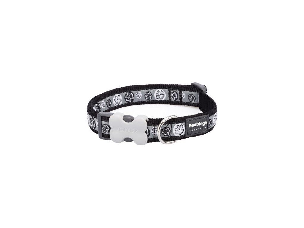 Red Dingo obojek – Paw Impressions Black – 20 mm x 30-47 cm