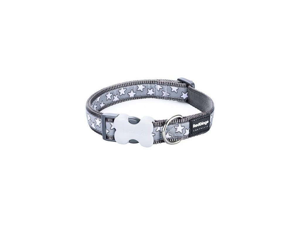 Red Dingo obojek – Stars White on Grey – 12 mm x 20-32 cm