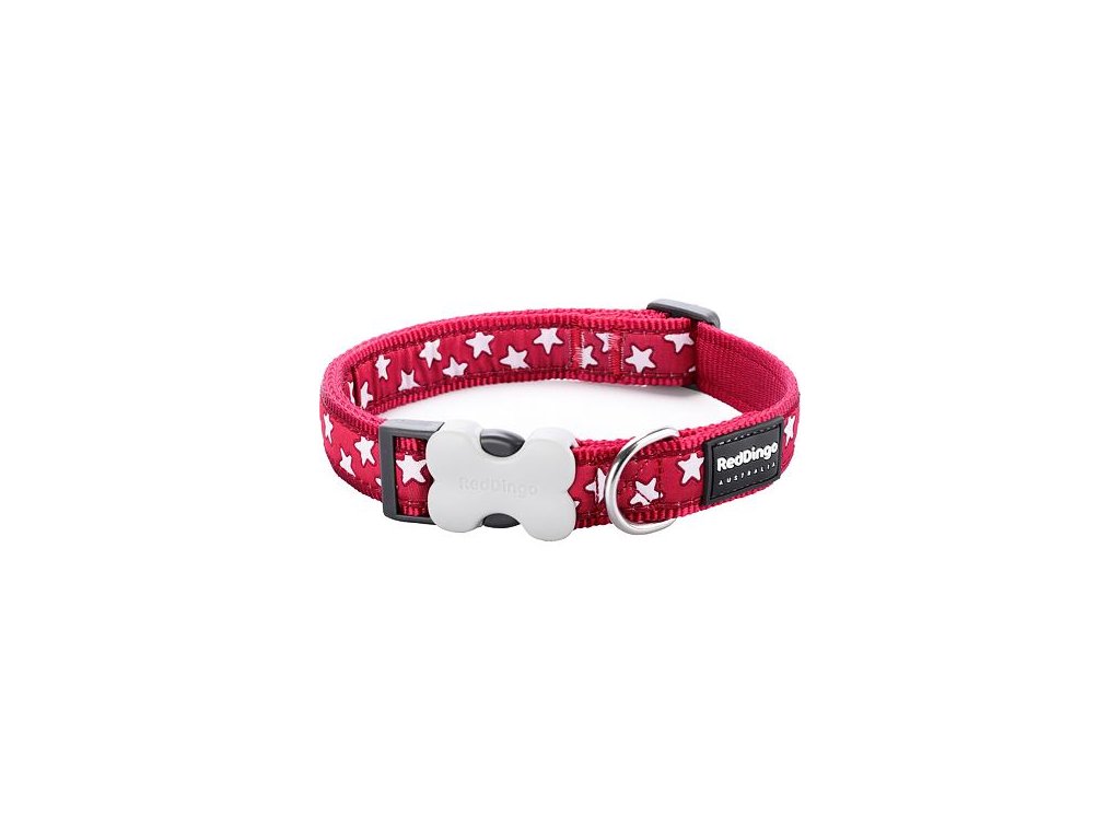 Red Dingo obojek – Stars White on Red – 12 mm x 20-32 cm
