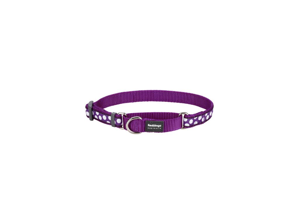 Red Dingo obojek polostahovací – White Spots on Purple – 25 mm x 41-62 cm