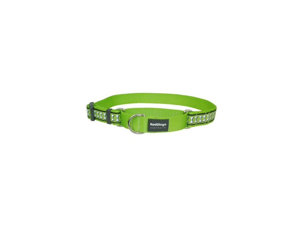Red Dingo obojek polostahovací reflexní – Bones Lime – 25 mm x 41-62 cm