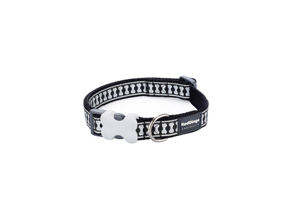 Red Dingo obojek reflexní – Bones Black – 15 mm x 24-36 cm