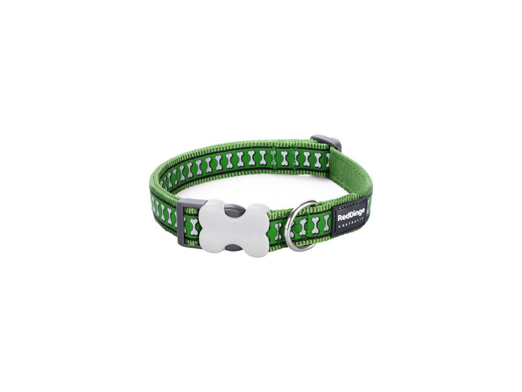 Red Dingo obojek reflexní – Bones Green – 15 mm x 24-36 cm