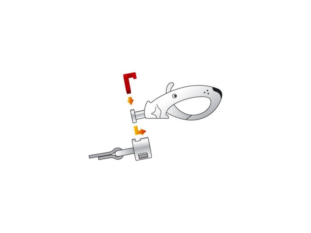 Velká karabina jde připevnit pouze na vodítka Red Dingo s šířkou popruhu 25 mm.