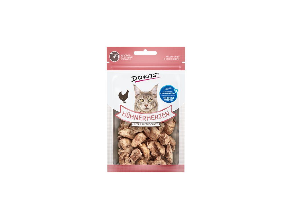 Dokas Mrazem sušená kuřecí srdíčka pro kočky 15 g