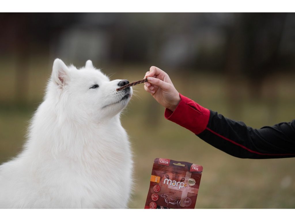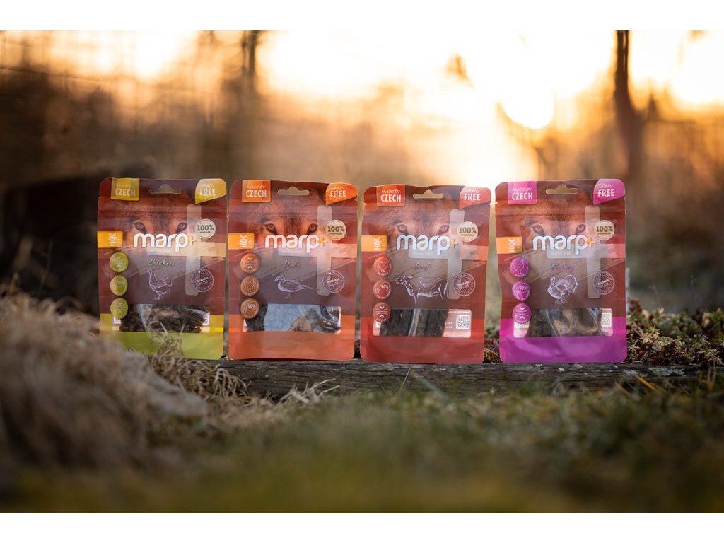 Šetrný proces výroby, pouze přírodní suroviny a 90 % masa - to jsou nové pamlsky Marp Holistic Plus. A navíc je vyrábíme v ČR, takže jsou pod přísným dohledem evropské legislativy. Můžete je použít za odměnu nebo jen tak pro radost. I u pamlsků je důležité složení, takže tyto pamlsky neobsahují žádné umělé konzervanty, barviva nebo obiloviny. Zkuste je, vaši psi je budou milovat a vy budete mít jistotu, že jim dáváte pamlsek, který pochází z důvěryhodných zdrojů a je bezpečný.