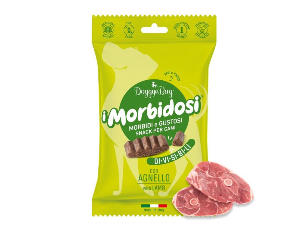 Všechny pamlsky DoggyeBag jsou ručně vyráběny v řemeslné dílně v Itálii výhradně z čerstvých kvalitních surovin určených pro lidskou spotřebu. Balení pamlsků Morbidosi má navíc praktické otvírání uprostřed a je vyrobeno z plně recyklovatelného papíru.