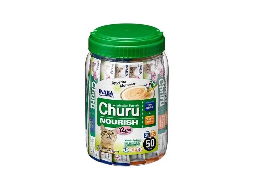 Veterinární varianta pochoutek Churu je velmi chutné přírodní pyré s vysokým obsahem vody, které zvyšuje chuť k jídlu a pomáhá kočičím pacientům při rekonvalescenci. Churu je dostupné ve dvou kalorických verzích a vyráběné v továrnách s GMP/HACCP certifikáty. Stres a nechutenství jsou největšími strašáky během hospitalizace koček, ale díky pamlskům Churu Nourish nebo Churu Diet budou vaši kočičí pacienti ve větší pohodě.
