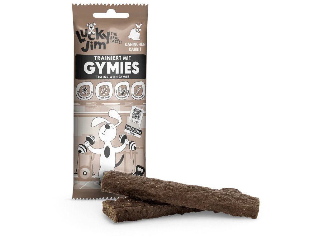 Gymies jsou tréninkové pamlsky ve formě měkkých masových tyčinek s králičím a hovězím masem, které lze snadno nalámat na menší kousky. Mají vysoký obsah živočišné složky a jednoduché složení bez obilovin a přidaného cukru. Hodí se nejen jako odměna při tréninku, ale i jako rychlá svačinka pro doplnění energie na výletě, a chutný pamlsek i pro vybíravé pejsky.měkké masové tyčinky, které se snadno lámou
