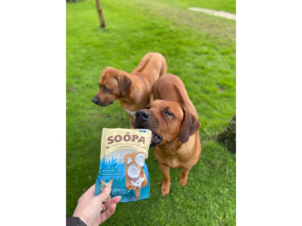 Množství podávaného pamlsku vždy přizpůsobte hmotnosti, aktivitě a celkové kondici psa. Zajistěte dostatek pitné vody. Soopa Chews jsou vhodné pro psy od 3 měsíců věku; bez dozoru doporučeno od 6 měsíců. K dostání jsou ve třech druzích: Papáju a batáty lze psům podávat i ve vyšším množství, kokos má však detoxikační účinky, proto by měl být podáván pouze v menším množství. Vzhledem k vyššímu obsahu vlákniny se mohou ve stolici objevit drobné nestrávené zbytky, což je běžné a neškodné.