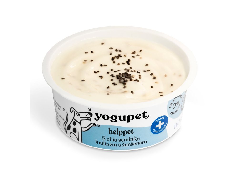 Yogupet Helppet je funkční pasterizovaný jogurt pro psy obohacený o chia semínka, inulin a ženšen. Ideální jako doplněk stravy pro starší psy, zvířata v rekonvalescenci nebo ty, kteří potřebují podpořit organismus během nemoci či po ní. Pomáhá posilovat imunitu, zlepšuje vitalitu a přispívá k celkové pohodě psa.Vyrábí se z bezlaktózového mléka a neobsahuje žádná umělá barviva, konzervanty ani sladidla – pouze kvalitní přírodní suroviny. Mezi klíčové složky patří chia semínka, která jsou bohatým zdrojem omega-3 mastných kyselin, vlákniny a antioxidantů – podporují zdravé trávení, srst i celkovou vitalitu. Ženšen pomáhá posilovat imunitní systém, zvyšovat odolnost vůči stresu a podporovat regeneraci organismu, což ocení zejména starší nebo oslabení psi. Nechybí ani inulin, přírodní prebiotická vláknina, která přispívá ke zdravé střevní mikroflóře a správnému fungování trávicího systému.