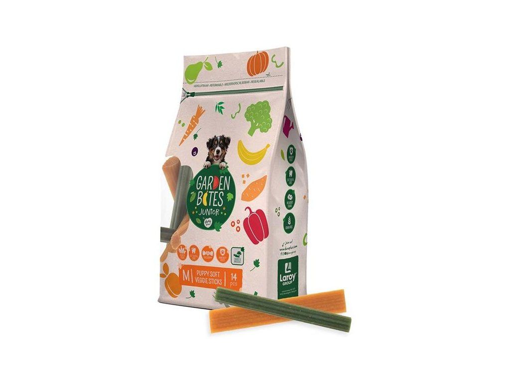 Vegetariánské pamlsky Garden Bites Junior jsou ideální odměnou pro vaše štěně, obzvláště v období přezubování. Obsahují velkorysý podíl batátové mouky (45 %) bohaté na vitamíny, vápník a železo. Speciální tvar a měkčí struktura pamlsků pomáhají masírovat dásně a čistit zuby štěněte. 100% bezlepkové pamlsky jsou snadno stravitelné a neobsahují cukr. A navíc jsou chuťově naprosto neodolatelné!