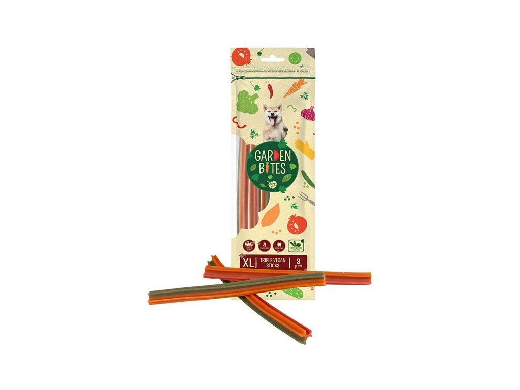 Vegetariánské pamlsky Garden Bites jsou ideální odměnou pro vašeho psa. Obsahují velkorysý podíl batátů (55 %) doplněný rajčaty, mrkví a okurkou. Batáty jsou bohaté na vitamíny, vápník a železo. Speciální tvar pamlsků pomáhá masírovat dásně a čistit zuby psa. Přírodní extrakt z máty navíc osvěžuje dech. 100% bezlepkové pamlsky jsou snadno stravitelné a díky tomu vhodné i pro psy s alergiemi. A navíc jsou chuťově naprosto neodolatelné!